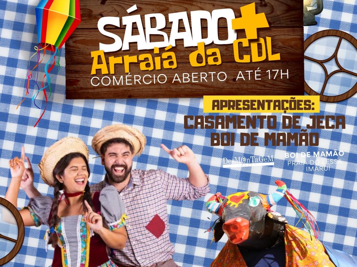 A Câmara de Dirigentes Lojistas (CDL) de Imbituba promove neste sábado (12), das 9h às 17h, mais uma edição do Sábado Mais, em clima de festa julina. Intitulada “Arraiá da CDL”, a ação será realizada no calçadão central da cidade e visa incentivar o consumo no comércio local com atrações culturais, serviços, música ao vivo e gastronomia.