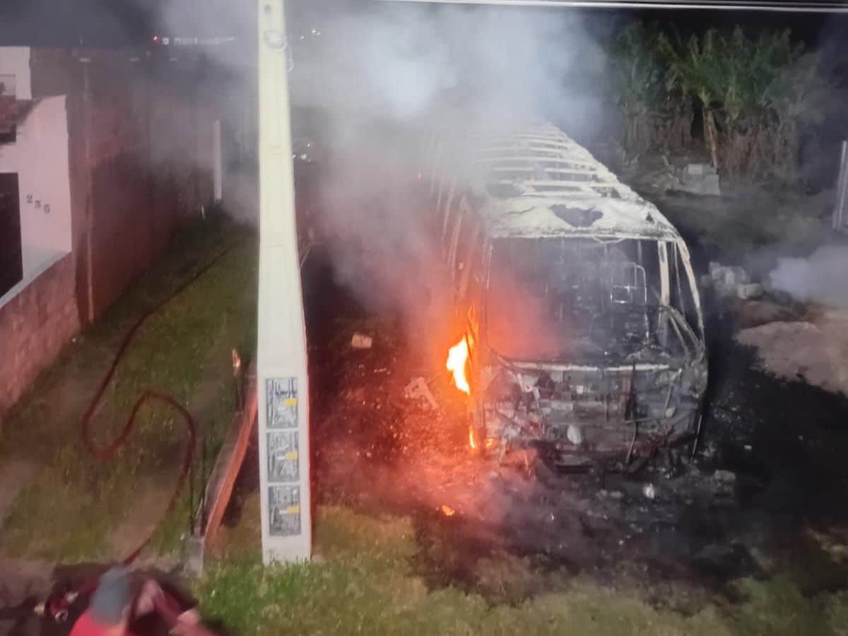 Conforme informado pelo Corpo de Bombeiros, a guarnição foi acionada por volta das 2h para atender a um incêndio em veículo. Ao chegar ao local, os socorristas confirmaram que se tratava de um micro-ônibus já completamente tomado pelas chamas.