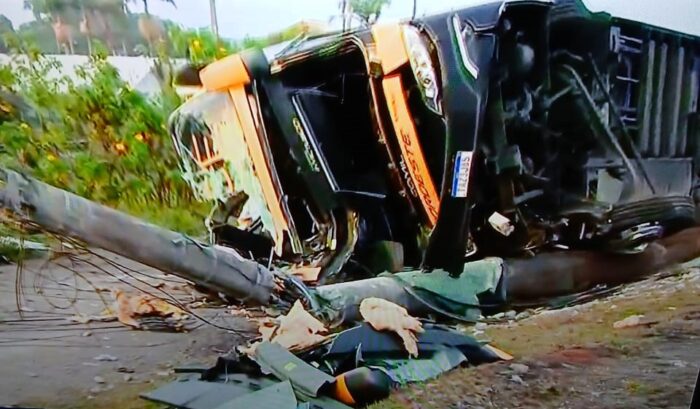 Ônibus que saiu de Porto Alegre tomba e deixa ao menos uma pessoa morta e feridos na BR-101