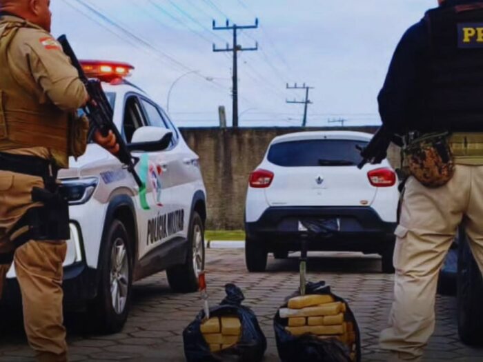 Ação conjunta entre PRF e PM interceptou veículo após perseguição; droga vinha de Florianópolis com destino a Sombrio.