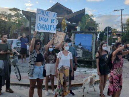 Protesto em Imbituba pede fim do despejo irregular de esgoto na Lagoa de Ibiraquera