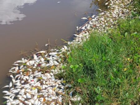 Mortandade de peixes é registrada na Lagoa do Meio, na Praia do Rosa em Imbituba