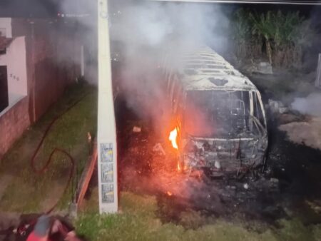 Incêndio destrói micro-ônibus na madrugada em Imbituba